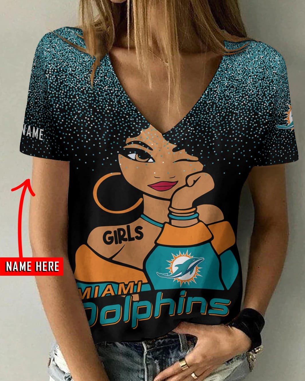 Miami Dolphins Personalized V-neck Women T-shirt BG844