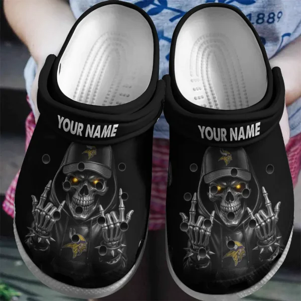 Minnesota Vikings Football Team US Skull Art Clogs Shoes Custom Name Gift For Fan AMCACS000099