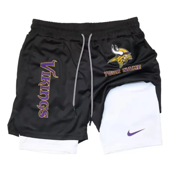 Minnesota Vikings Men Outdoor Casual Training Sports Shorts 2-in-1 Double-Layer Shorts AMCCLG000476