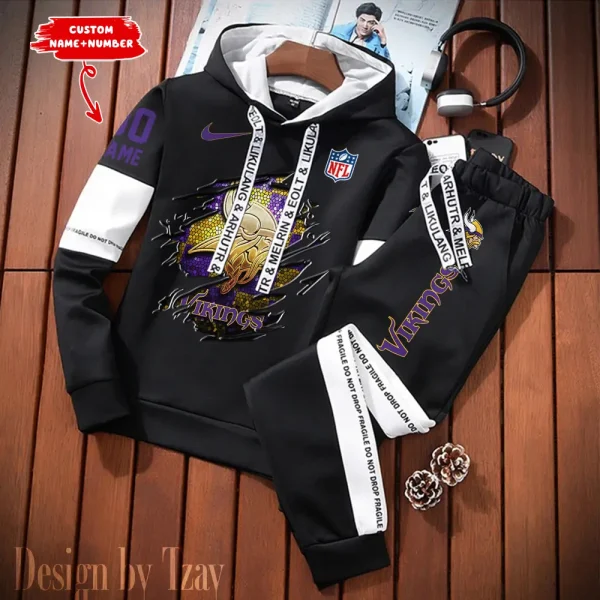 Minnesota Vikings New Fashion Casual Sportswear: Stylish Hooded Sweatshirt and Jogger Pants Set for Men AMCCSSW021