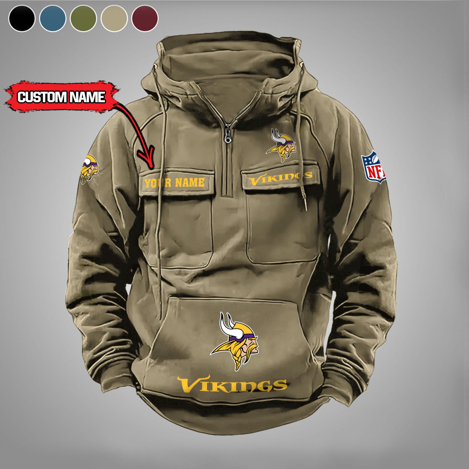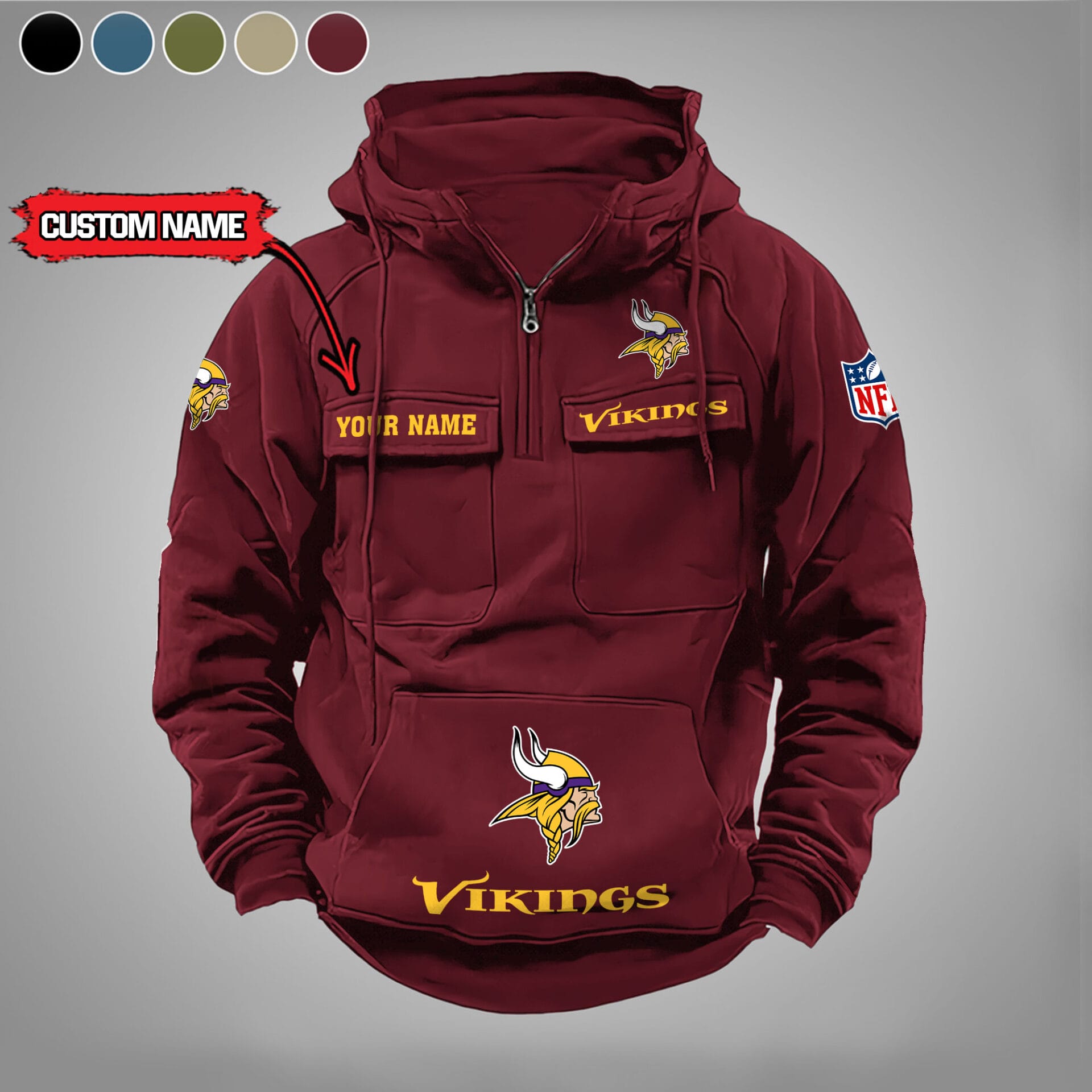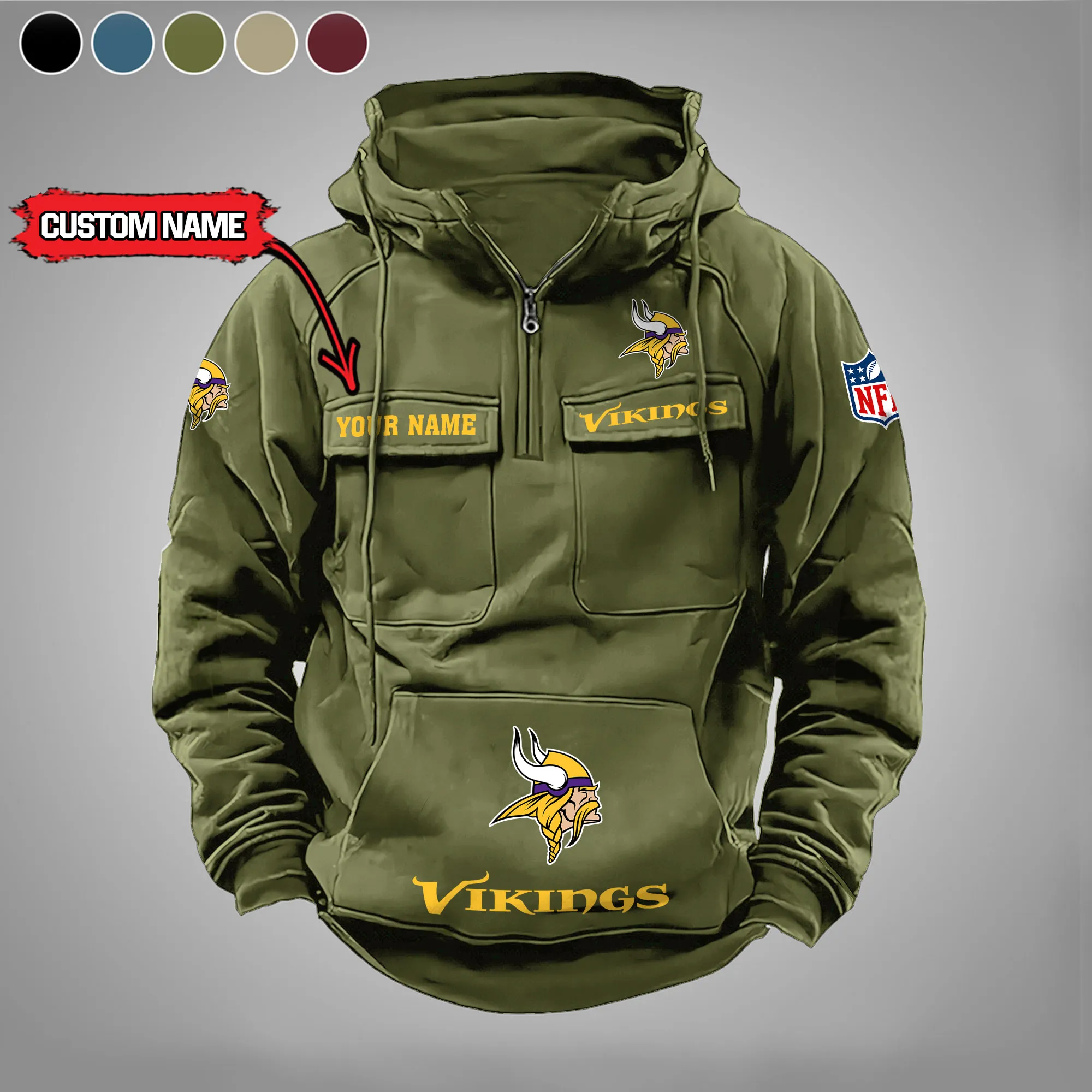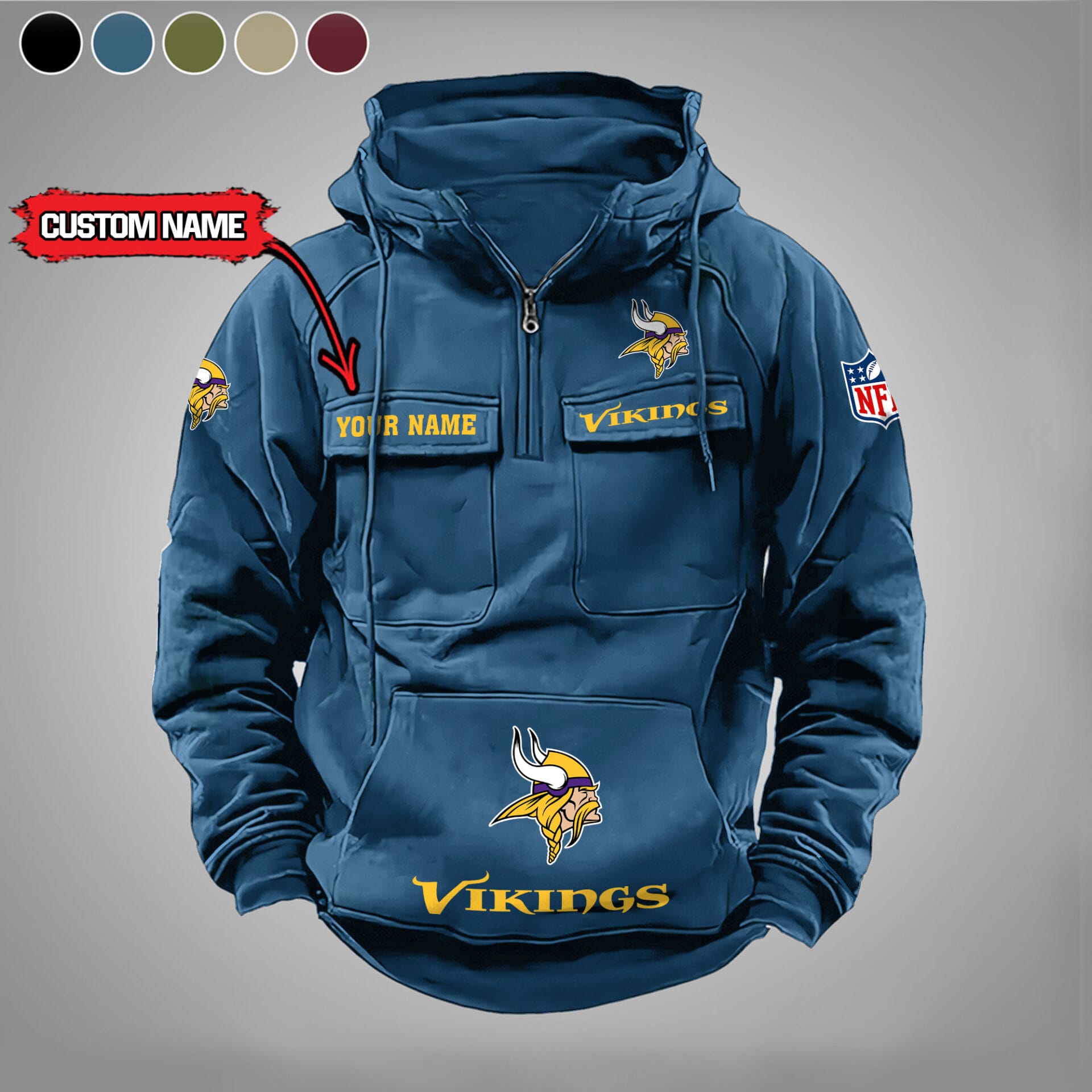 Minnesota Vikings New Personalized Multi Pockets Zip Hoodie AMCMZHD000011