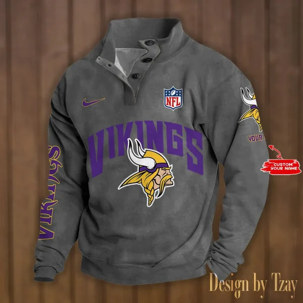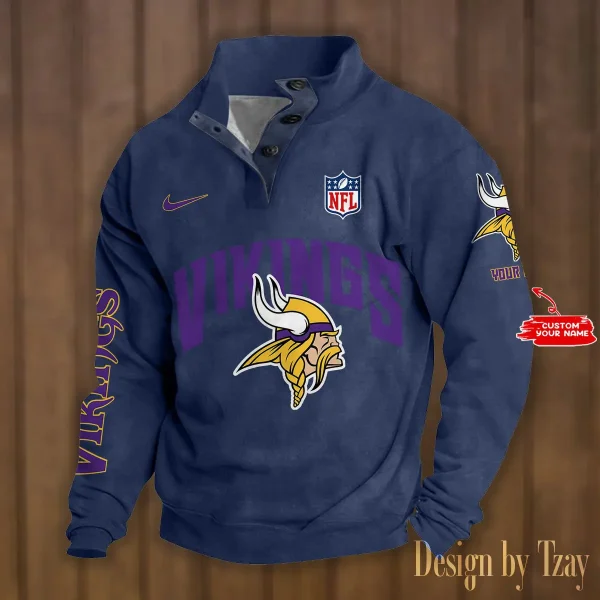 Minnesota Vikings Personalized Stand Collar Double Breasted Hoodie AMCDBH00117