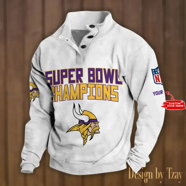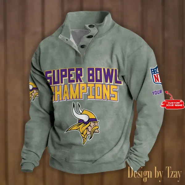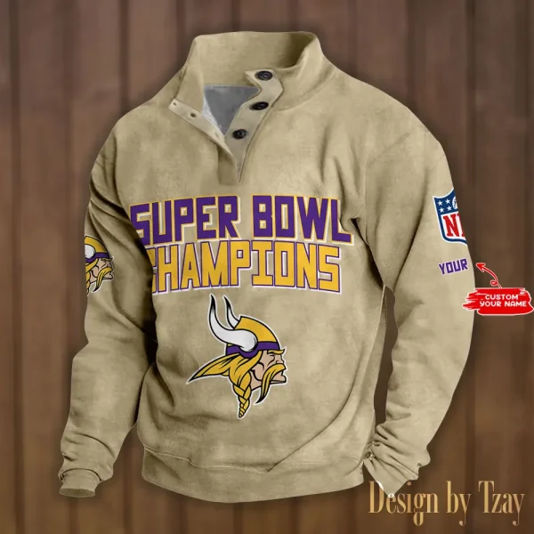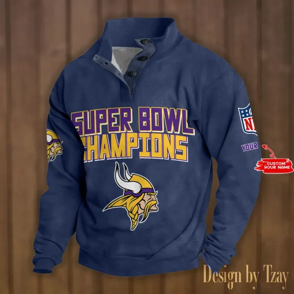 Minnesota Vikings Personalized Stand Collar Double Breasted Hoodie Super Bowl AMCDBH00177