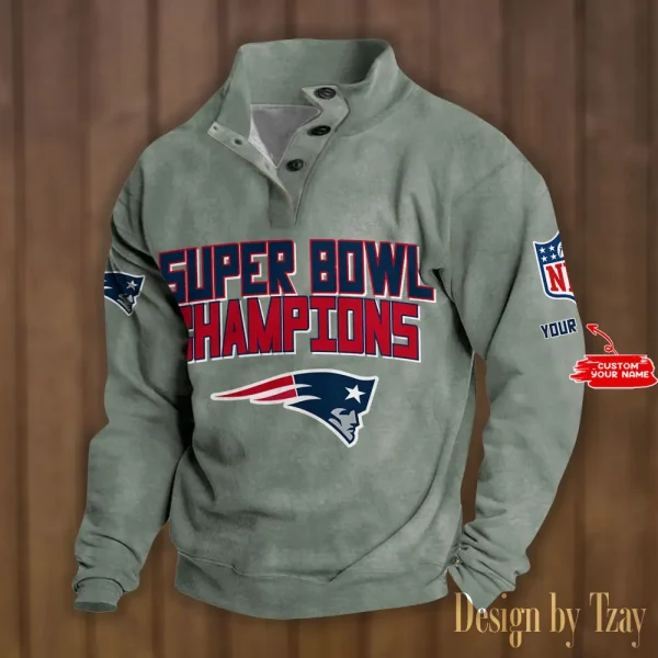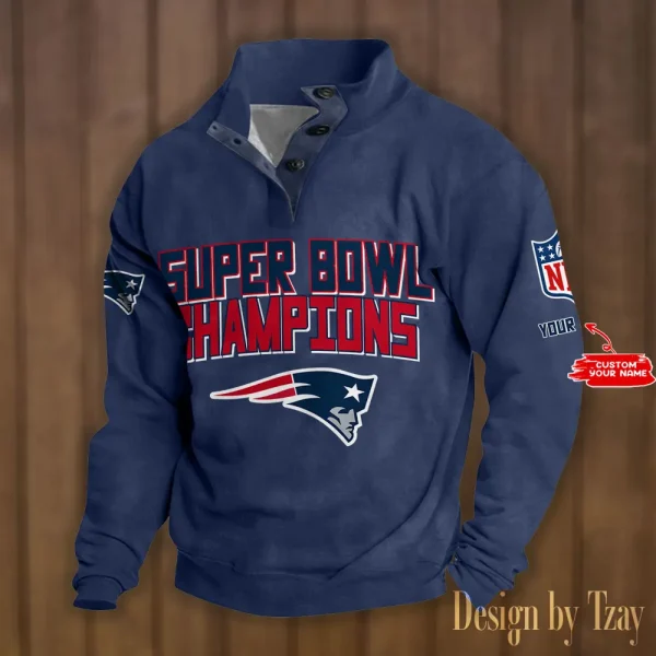 New England Patriots Personalized Stand Collar Double Breasted Hoodie Super Bowl AMCDBH00175