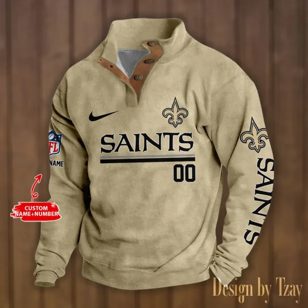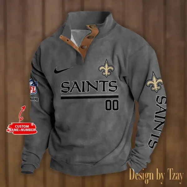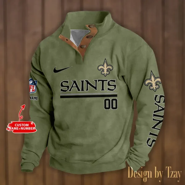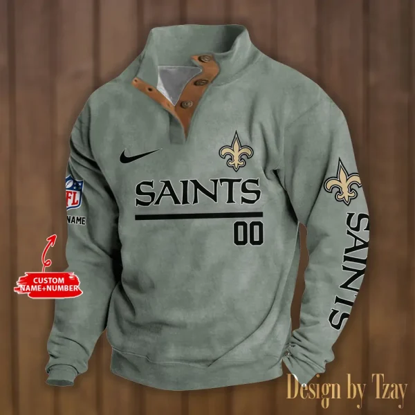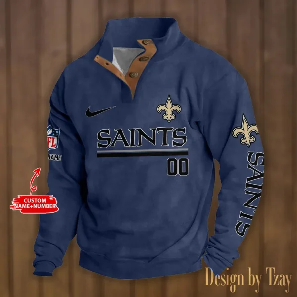 New Orleans Saints Personalized Stand Collar Double Breasted Hoodie AMCDBH00130