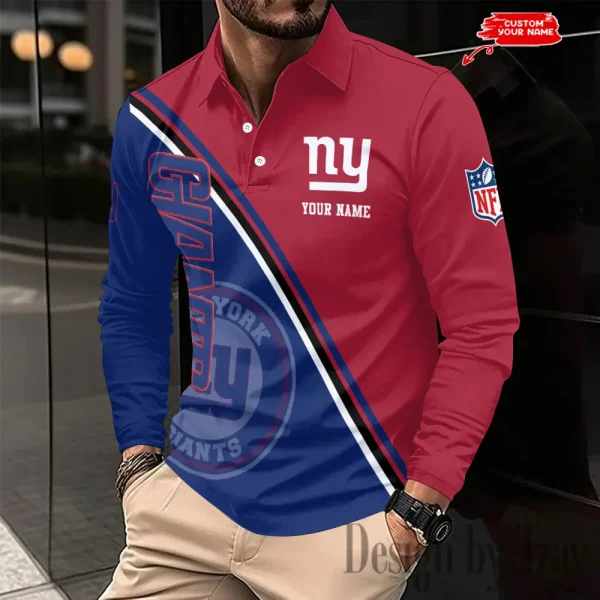 New York Giants Personalized Long Sleeve Polo Shirt New 2025 AMCLSPS0216