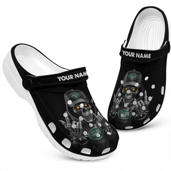New York Jets Football Team US Skull Art Clogs Shoes Custom Name Gift For Fan AMCACS000087