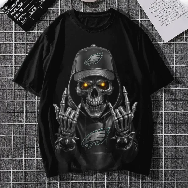 Philadelphia Eagles Football US Team Black Skull Art T-shirt Custom Any Name AMC2DTS00022