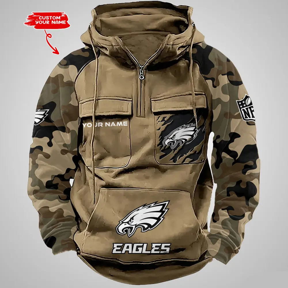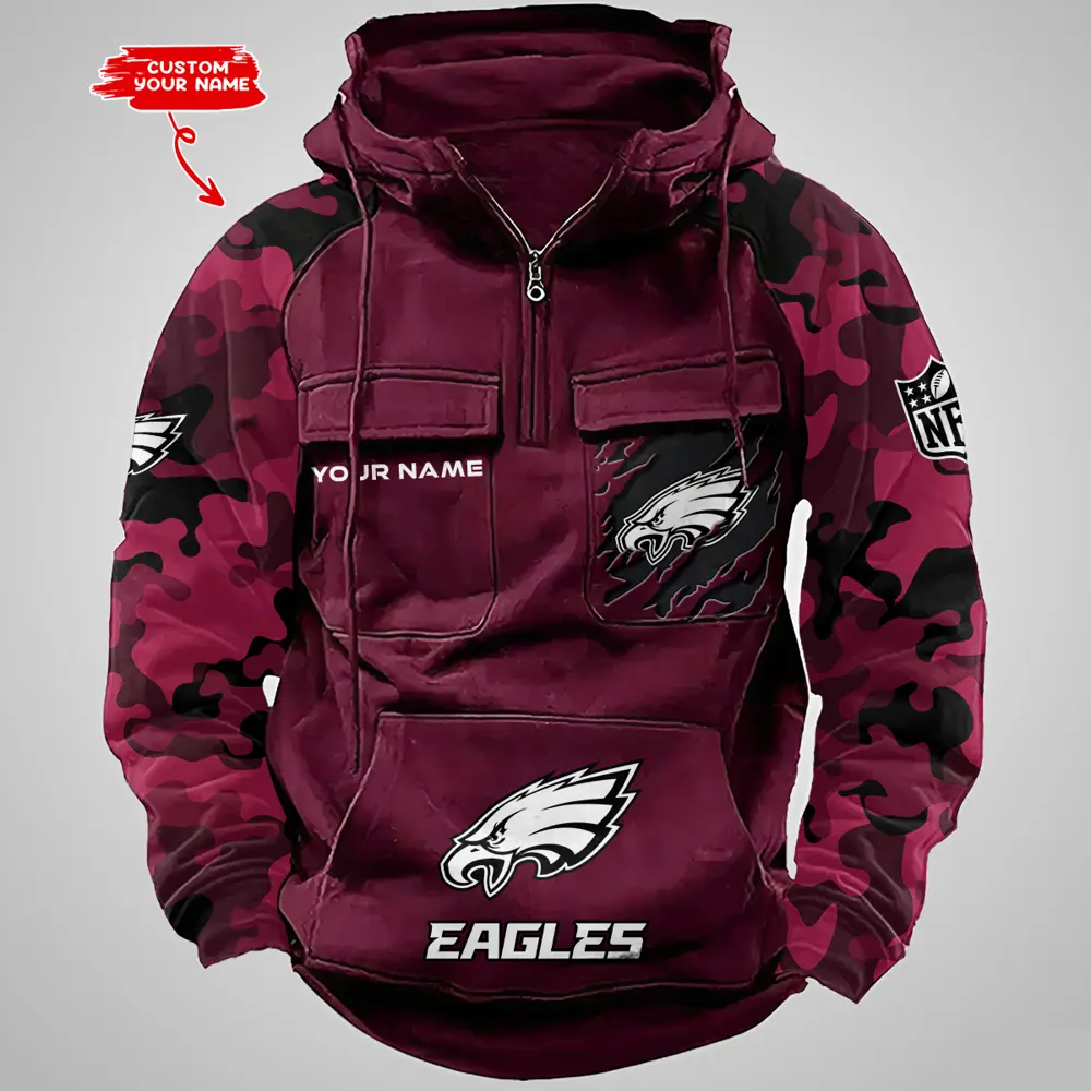 Philadelphia Eagles Hot Camouflage Multi Pockets Zip Hoodie AMCCLG001235
