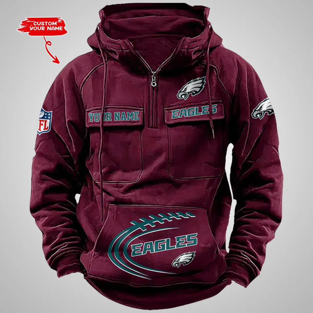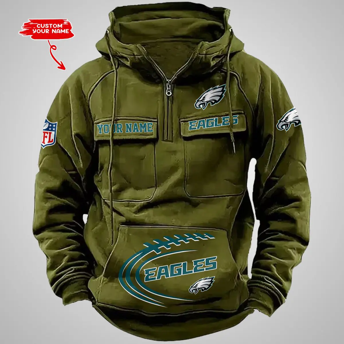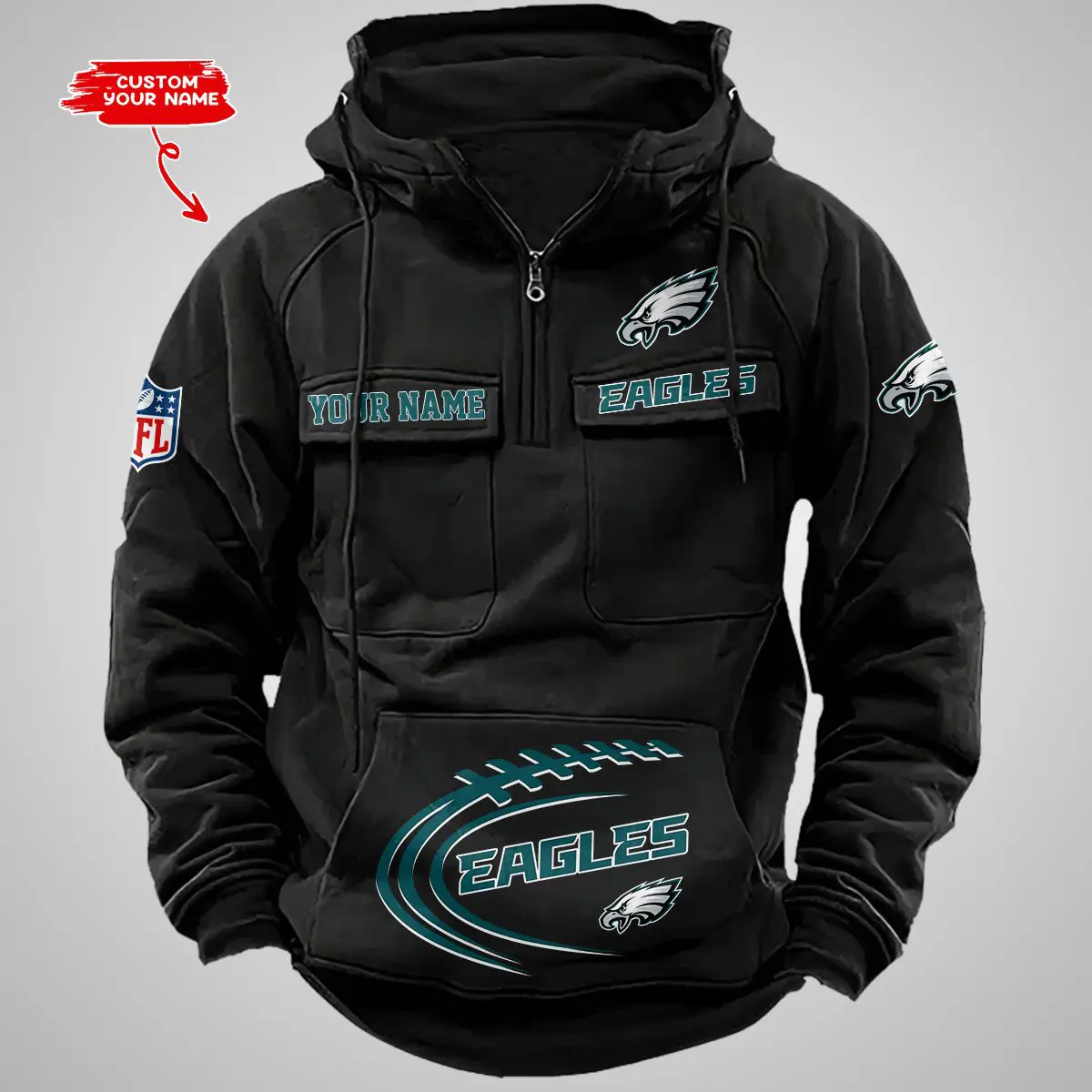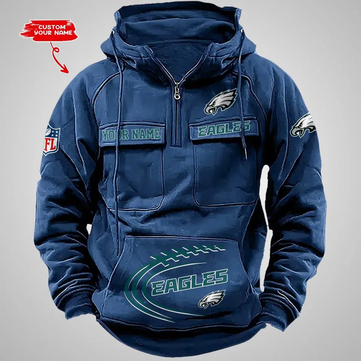 Philadelphia Eagles New Personalized Multi Pockets Zip Hoodie AMCMZHD000105