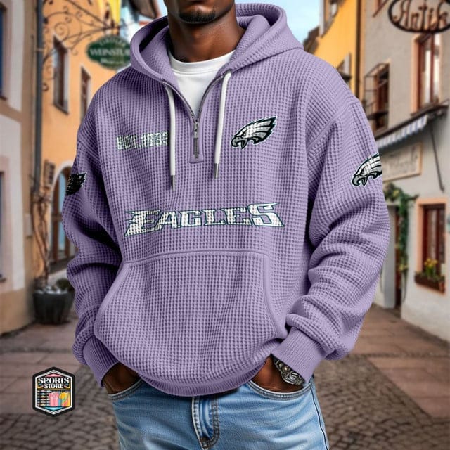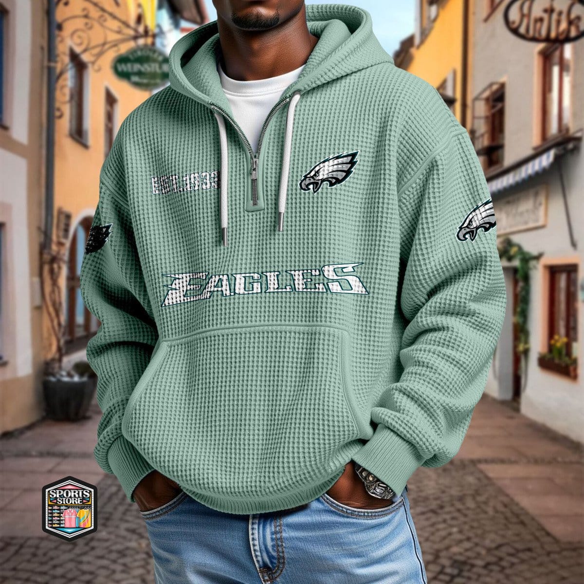 Philadelphia Eagles | Premium NFL Waffle Zipper Long Sleeve Hooded Sweatshirt AMCCLG002337