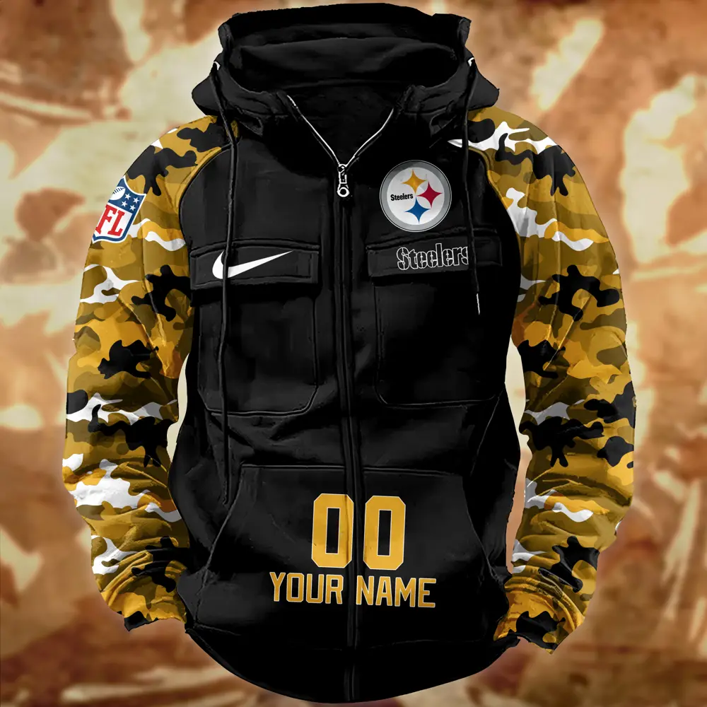 Pittsburgh Steelers Hot Camouflage Multi Pockets Zip Hoodie AMCCLG001172