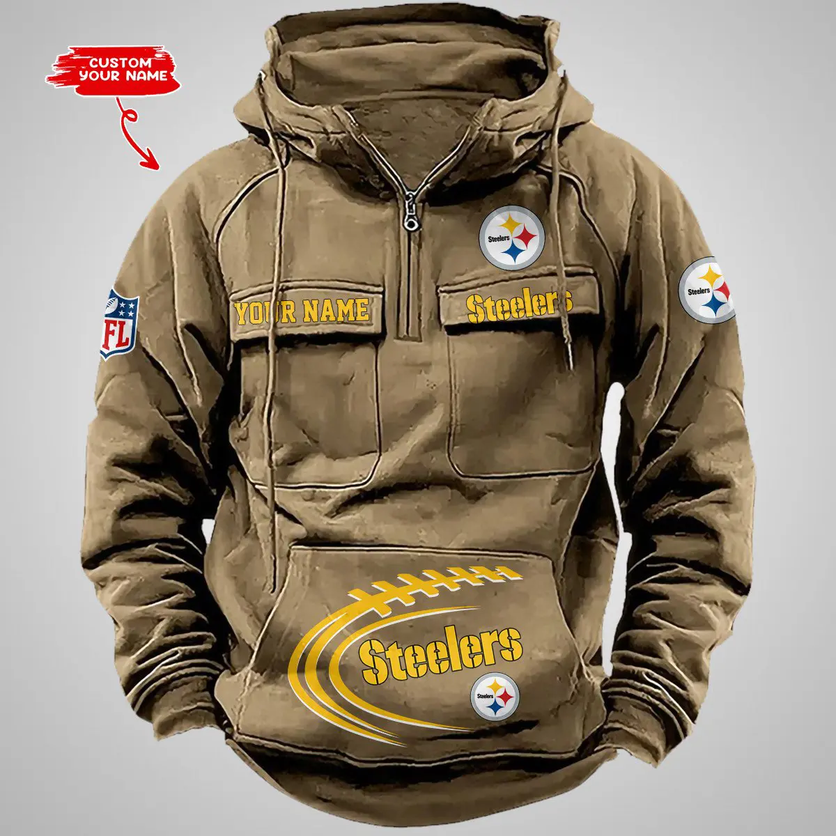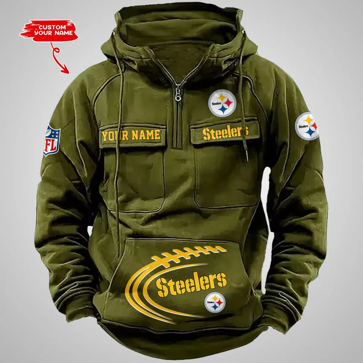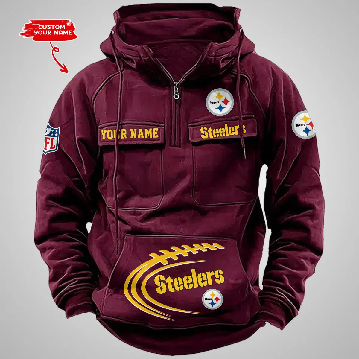 Pittsburgh Steelers New Personalized Multi Pockets Zip Hoodie AMCMZHD000106