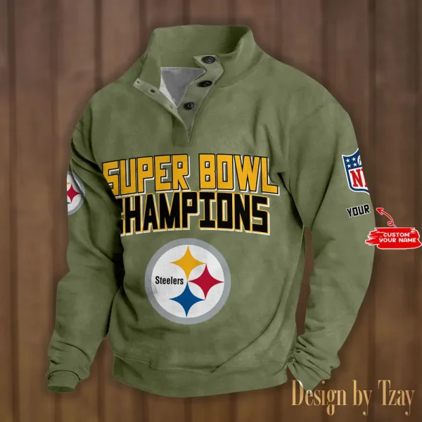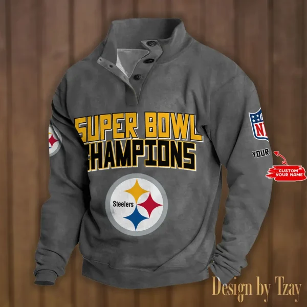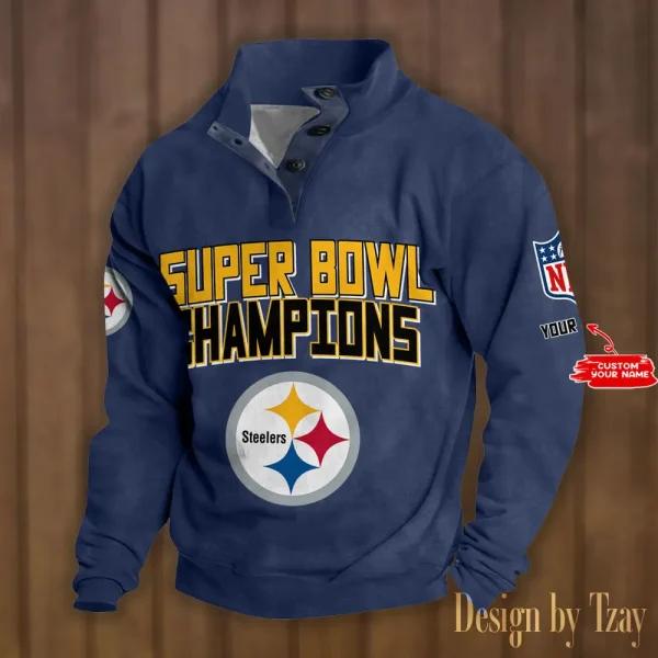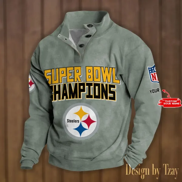 Pittsburgh Steelers Personalized Stand Collar Double Breasted Hoodie Super Bowl AMCDBH00171