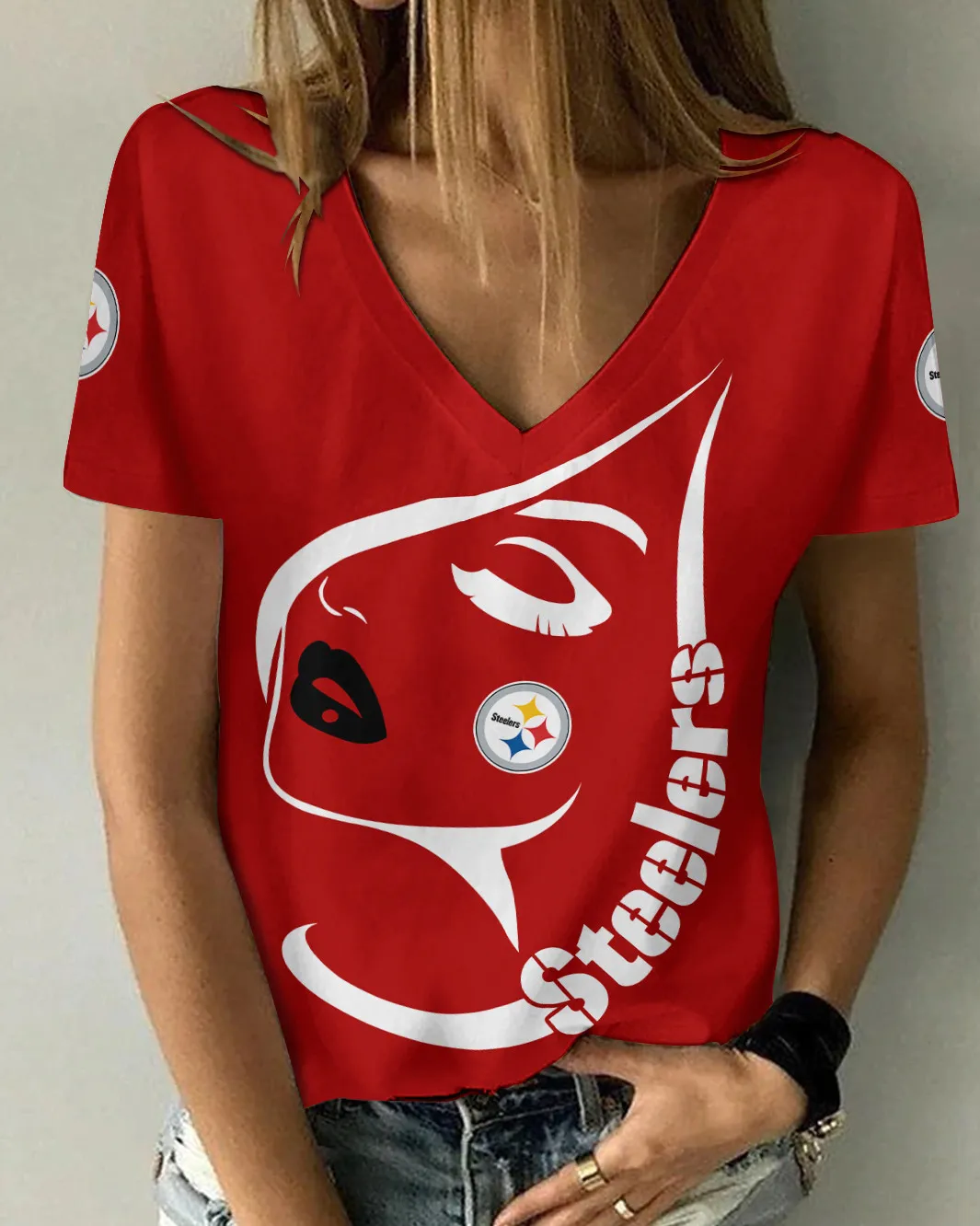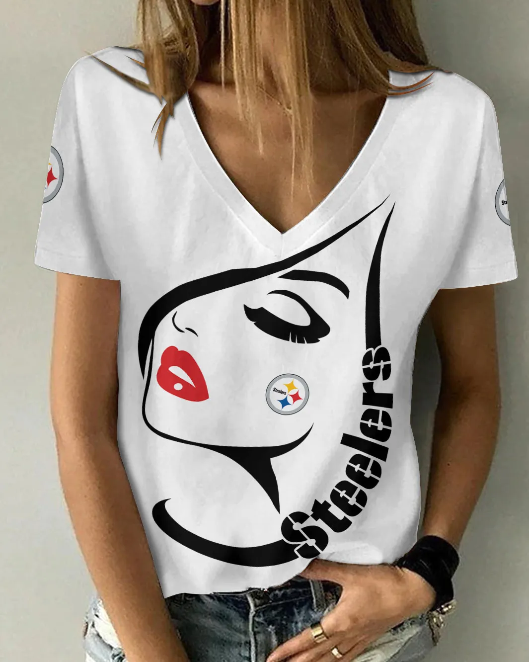 Pittsburgh Steelers Summer V-neck Women T-shirt 132