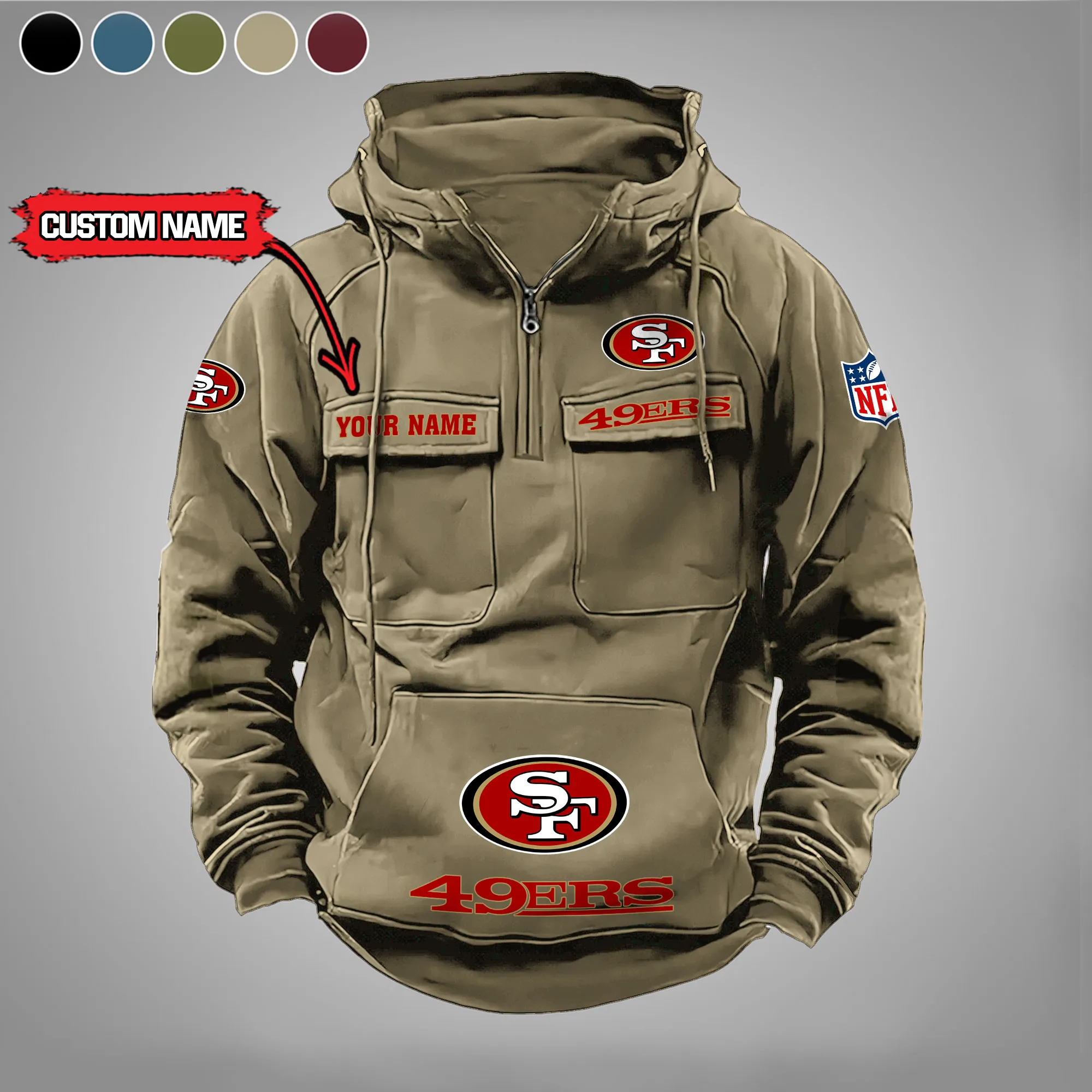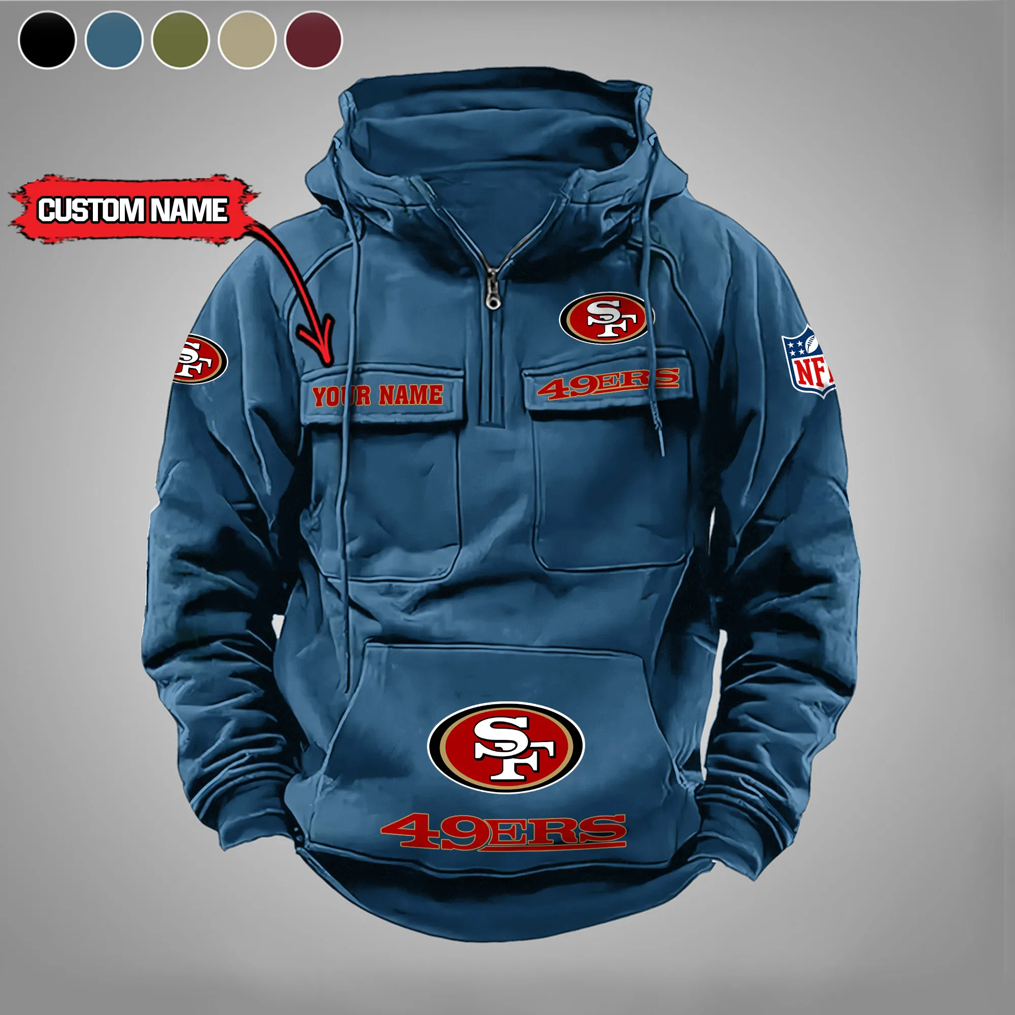San Francisco 49ers New Personalized Multi Pockets Zip Hoodie AMCMZHD000004