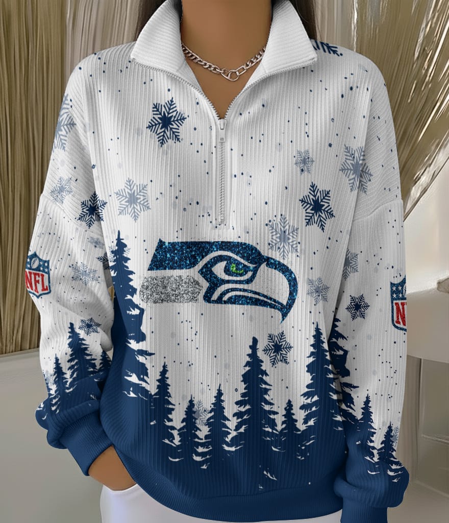 Seattle Seahawks 2025 Edition Quarter Zip Corduroy Sweatshirt for Christmas AMCCLG001447