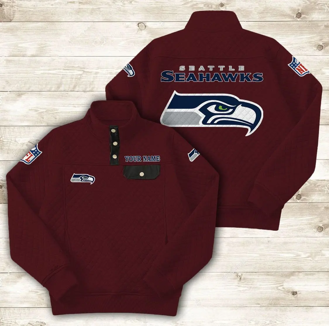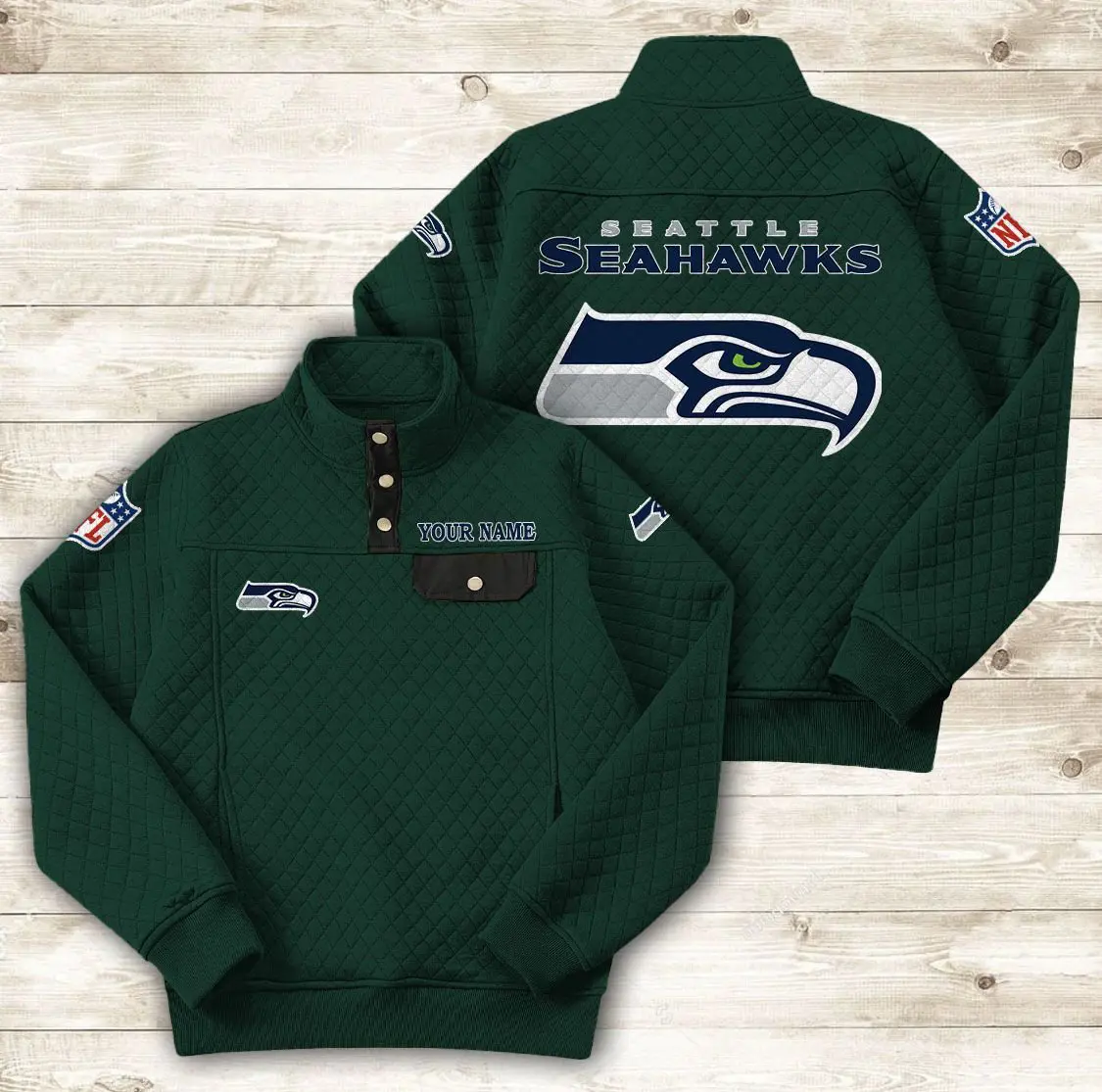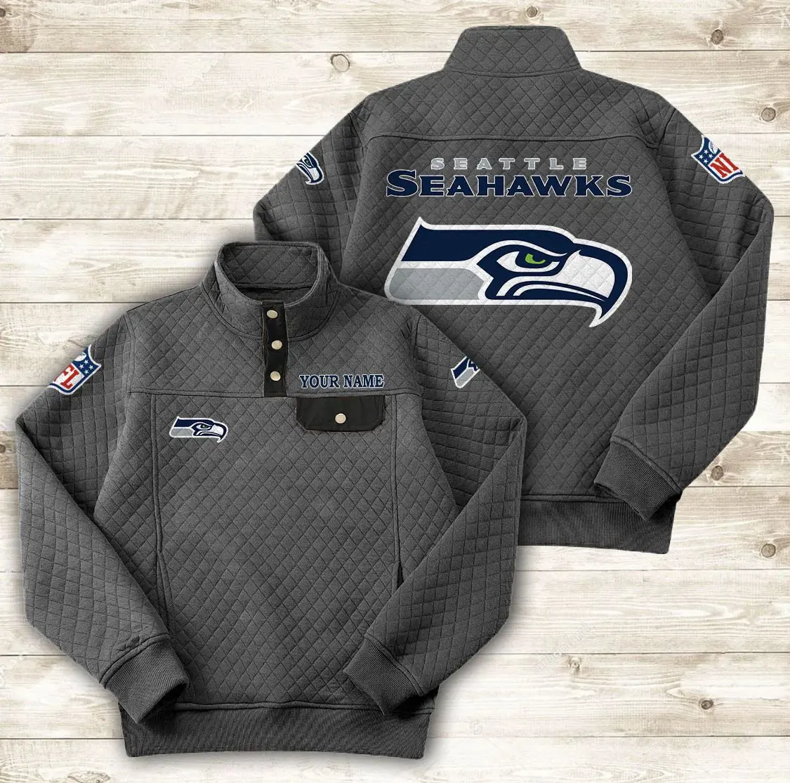 Seattle Seahawks Button Stand-up Collar Sweatshirt AMCBSCS029