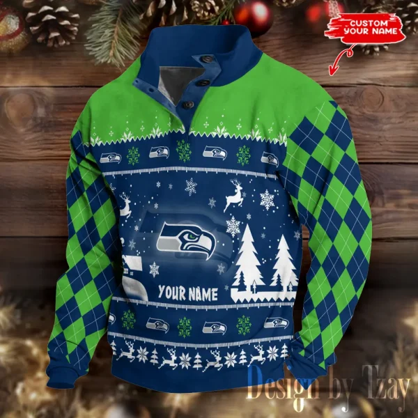 Seattle Seahawks Christmas Double Stand Collar Sport Hoodies AMCDBH00330