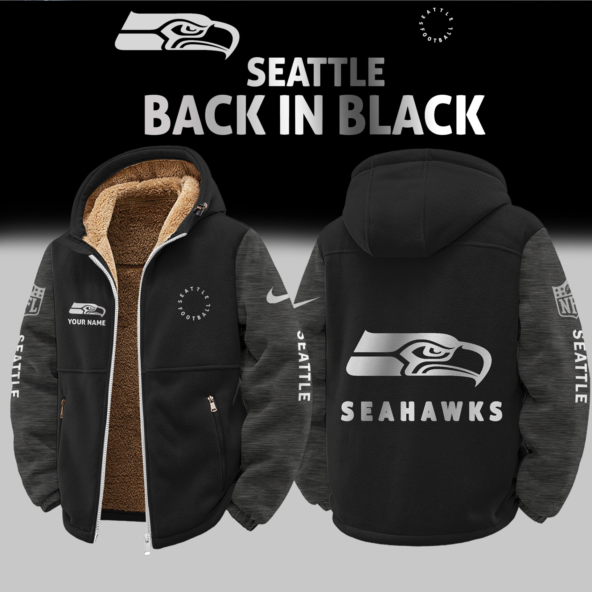Seattle Seahawks Customized Any Name Zip-Up Velvet Jacket Gift for Fans AMCCLG002510