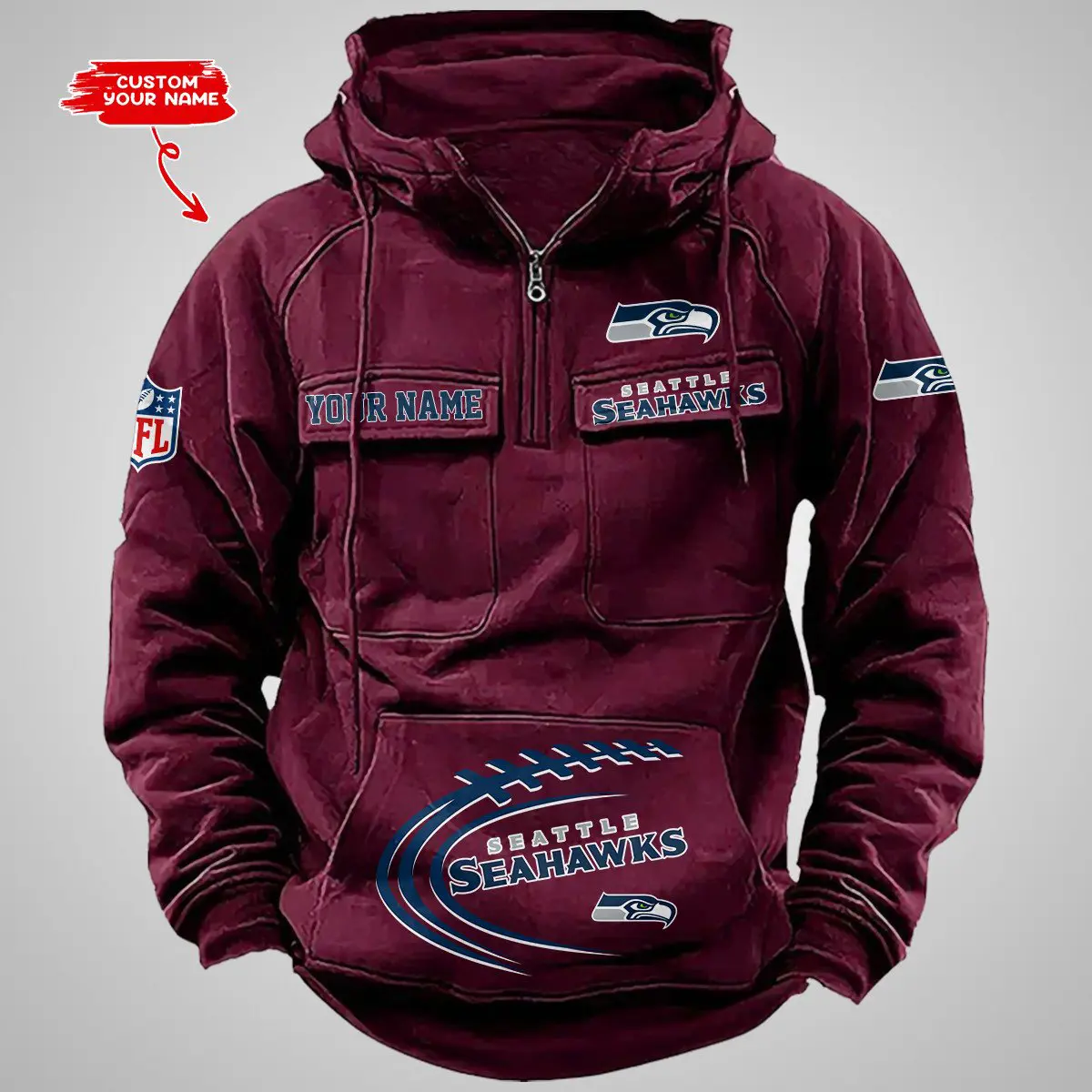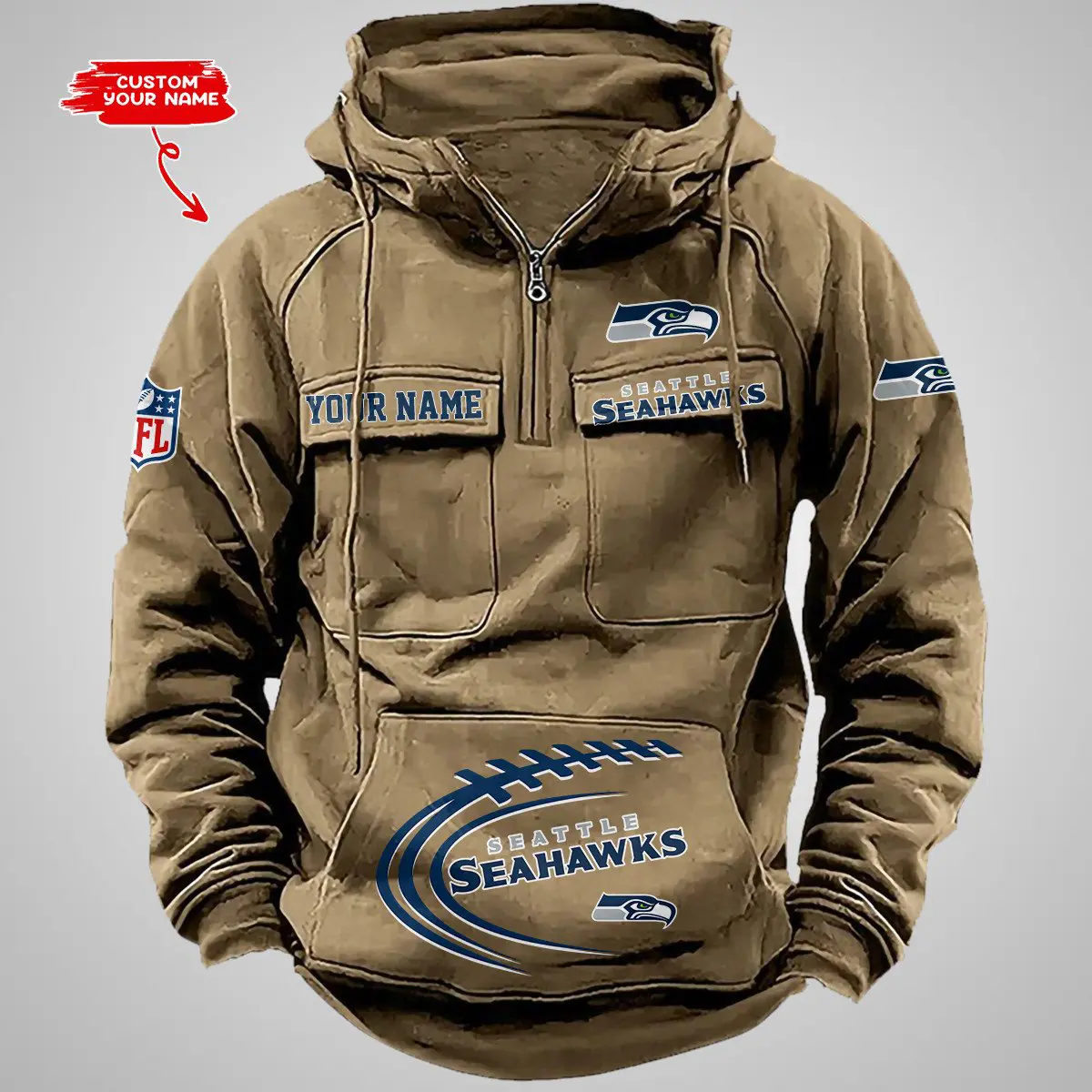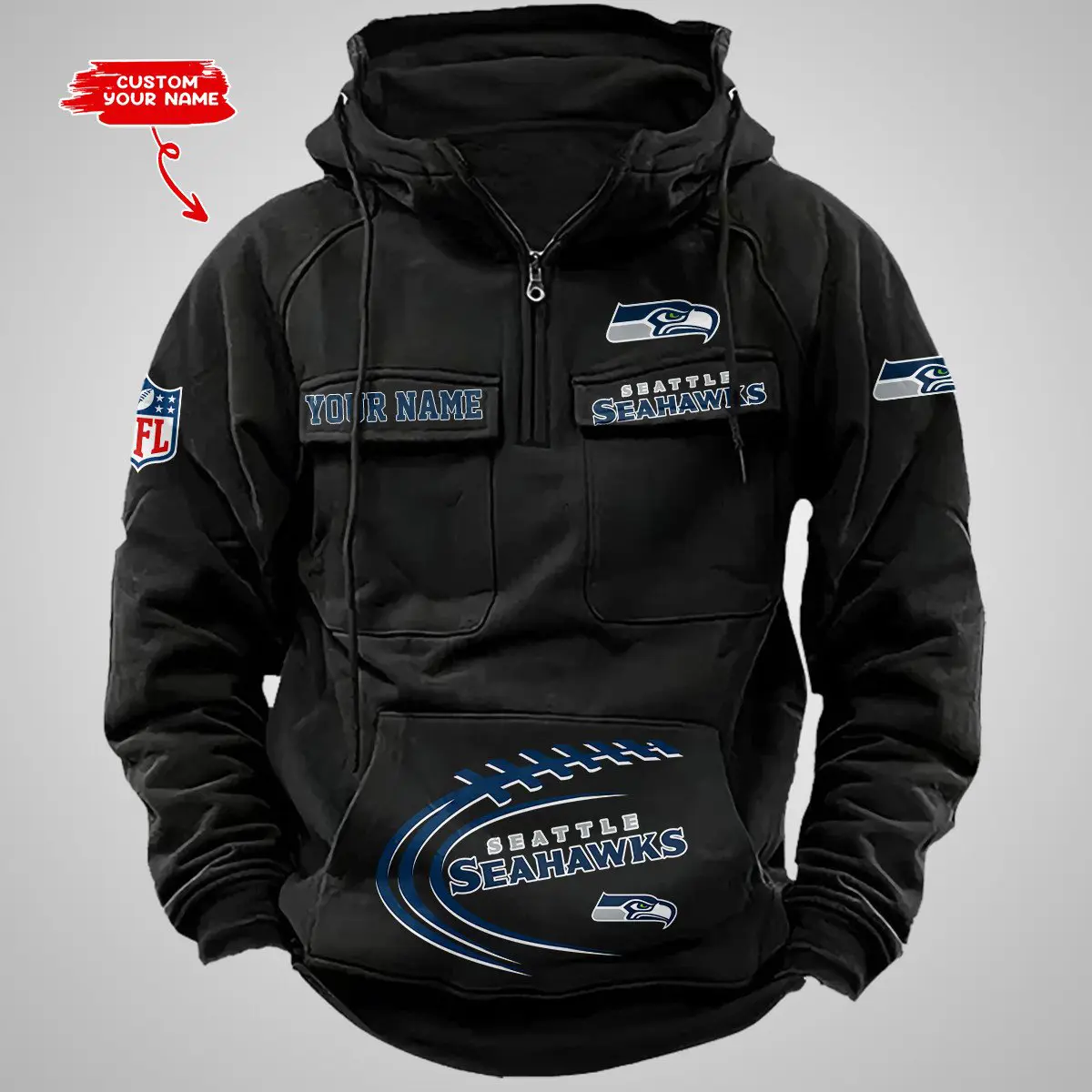 Seattle Seahawks New Personalized Multi Pockets Zip Hoodie AMCMZHD000062