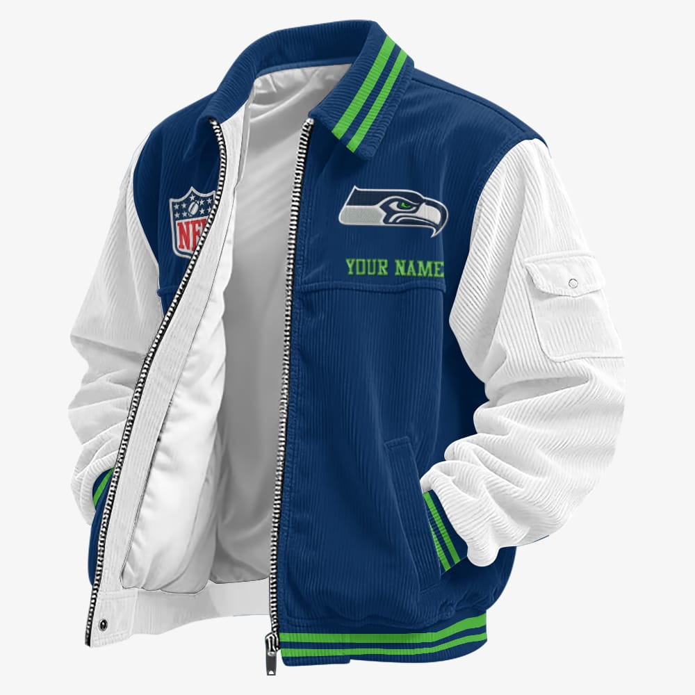 Seattle Seahawks Personalized Corduroy Bomber Jacket AMCCLG002157