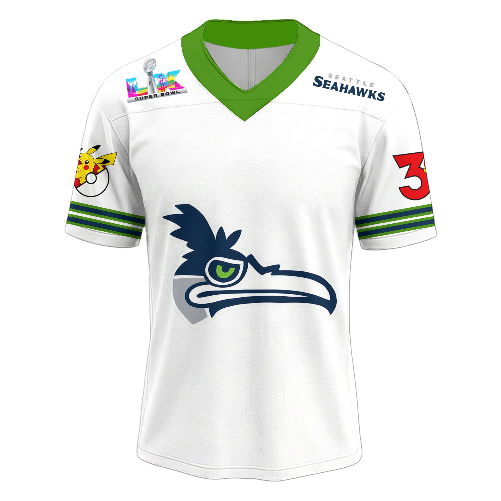 Seattle Seahawks x Pokemon x Super Bowl 2026 Limited Edition Personalized Women V-neck T-Shirt AMCCLG003010
