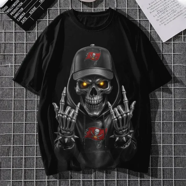 Tampa Bay Buccaneers Football US Team Black Skull Art T-shirt Custom Any Name AMC2DTS00025